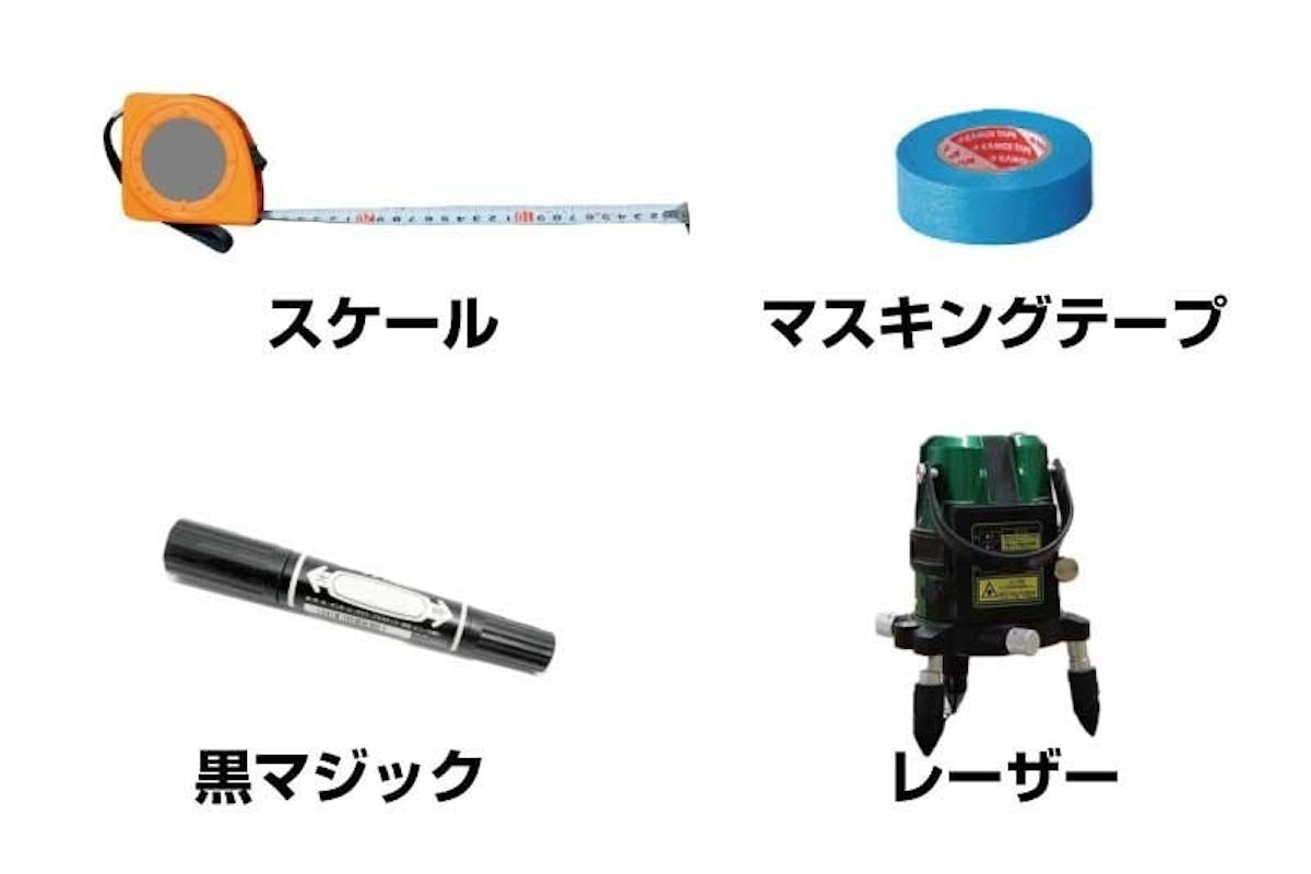 | マスキングテープ | 壁を汚さずマーキングを行うのに便利です |