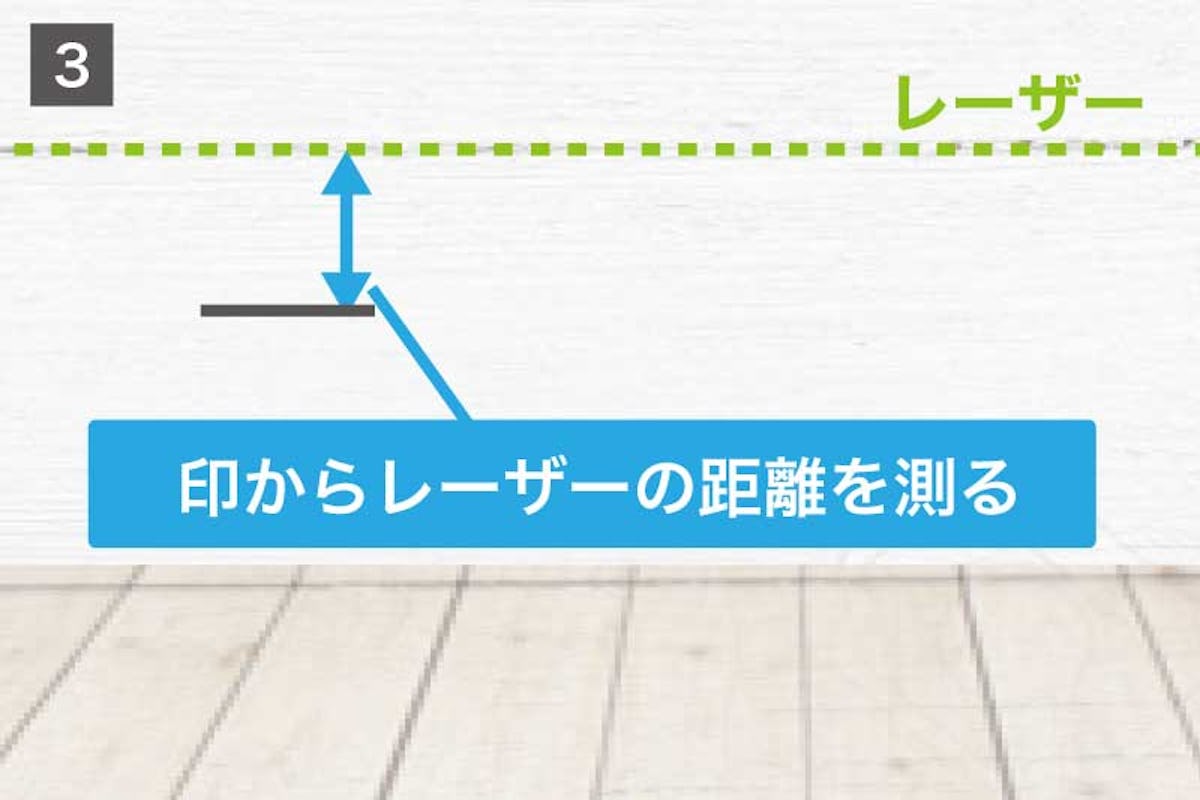 | 墨出し用レーザー | 鏡の取り付け位置に印をつけるときに用いる機材。墨出し用レーザー機を使用することで、正確な「床からの高さ」「垂直」「平行」がわかります。床や壁の影響を受けず、ズレや傾きのない鏡を貼るために使います。 |