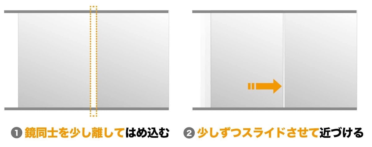 ポイント!鏡同士がぶつからないよう、スライドさせる