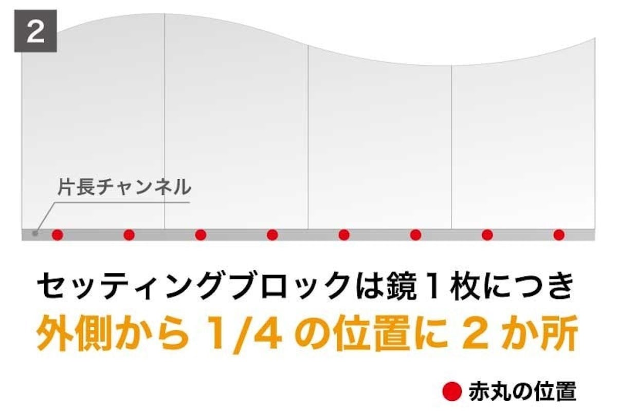 端から鏡を取りつけていくと、「傾きを調整した鏡」にあわせて傾きの調整を行い続けるため、施工にも時間がかかってしまいます。