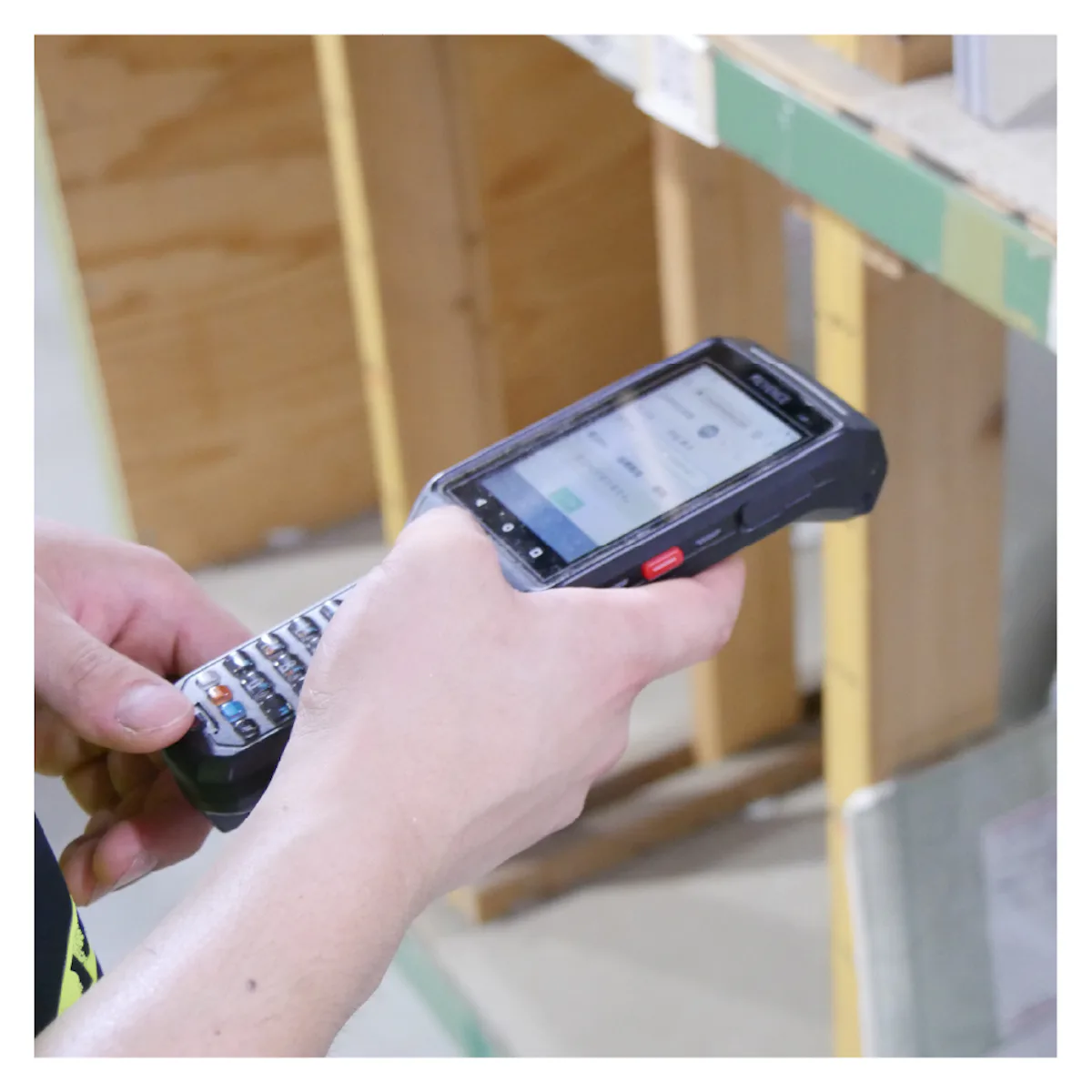 IDやサイズ情報をハンディターミナルで読み取ることで、データと実物を照合します。この仕組みにより誤出荷などのミス防止や、スムーズな検品・迅速なピッキングが可能になっています。