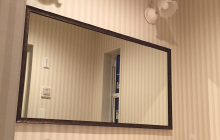 「ナチュラル系店舗の化粧室に、木製の枠付きウォールミラーを設置したい」