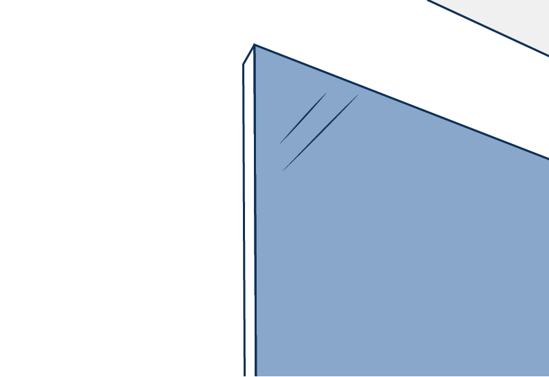 四角形の鏡には、四隅に「ツブシ加工」が無料で施されています。万が一、鏡にぶつかっても怪我をしにくいので安心してご利用いただけます。