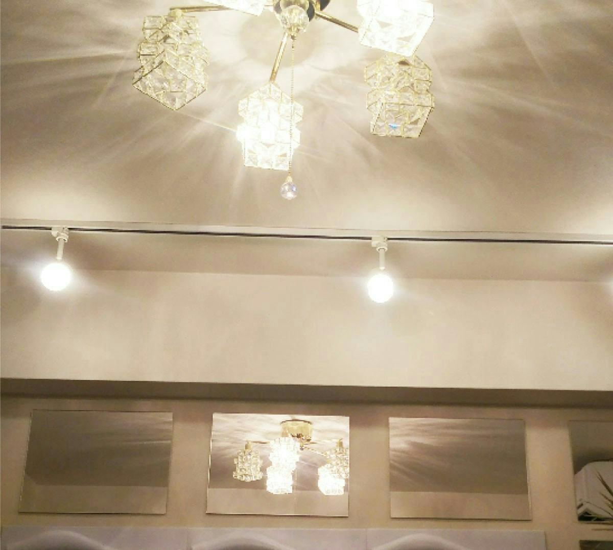 シャンデリアも鏡に映って輝きが2倍に見えますね。