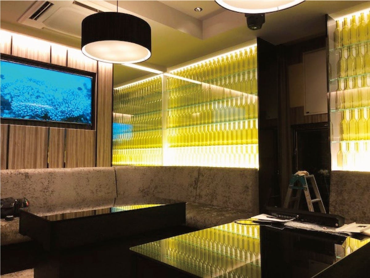 今回ご紹介するお客様も「店舗ラウンジの空間を広く見せたい」ということで鏡をご注文いただきました。