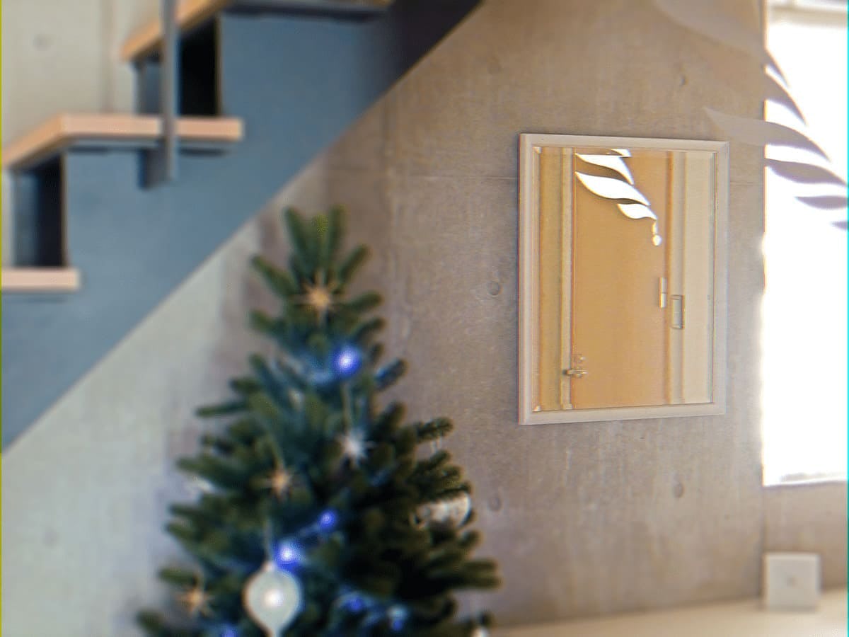 洗練されない無骨さがお洒落な打ちっぱなしの壁。「22-6491」が設置されたことによって、打ちっぱなしのお洒落な雰囲気を壊すことなく、明るい印象を与えてくれる壁になりました。お写真からは分かり辛いかもしれませんが、銀箔が施されているのでキラキラと光るフレームを楽しめますよ。