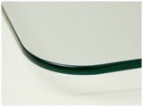 今回ご注文いただいたのは「ステンレスミラー」の1ミリ厚です。サイズは「横500ミリ × 縦700ミリ」、切断面の処理は手が切れない程度の加工「糸面【C】」です。また、鏡の角4箇所に「R加工」と、壁に設置するための「穴あけ加工」を施しました。