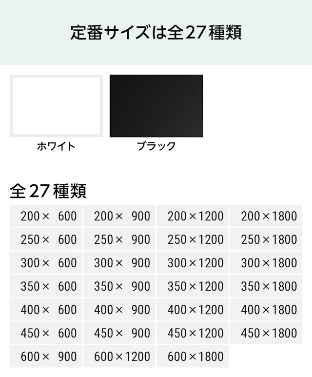 ※製作可能サイズはカラーごとに異なります。