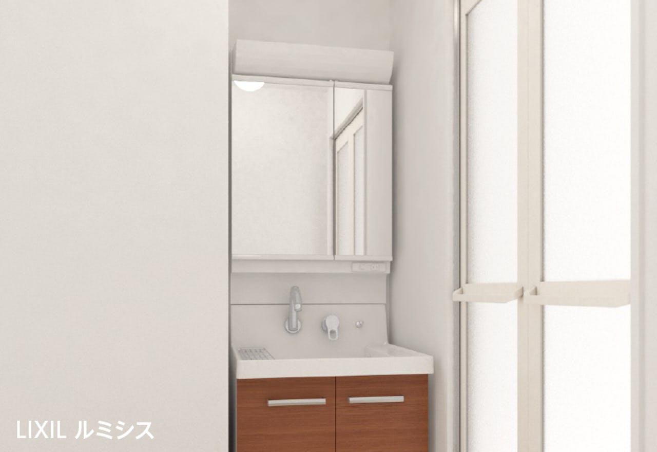 「採寸不要な洗面化粧鏡」は、化粧鏡の品番で注文できるメーカー純正の鏡です。ミラーキャビネットの鏡扉を、採寸の手間なくピッタリサイズでお届けします。