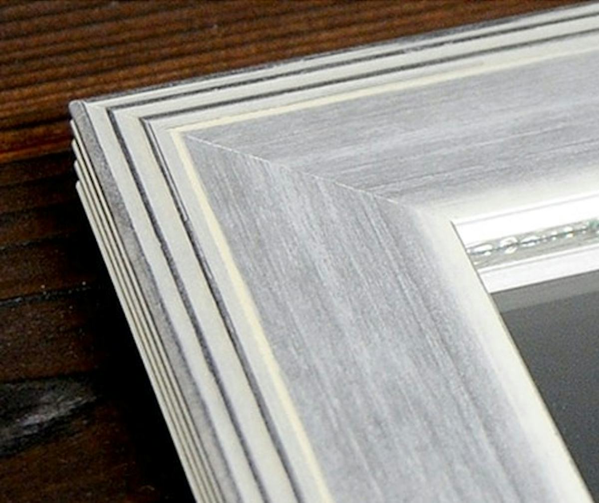 今回ご注文いただいたのは、オールドミラーシリーズ「C-39105」です。アンティークミラーの中でも古めかしい絵画の額縁のようなデザインが特徴のオールドミラーシリーズ。そのひとつであるC-39105は、輝くシルバーが存在感抜群!シンプルでありながらも、ゴージャスさを兼ね揃えた美しいデザインの鏡枠です。
