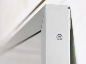 ダンス用割れないミラーの裏側に壁にかけるための三角金物が2箇所ついています。金具の位置は設置方法に合わせてお選びください。